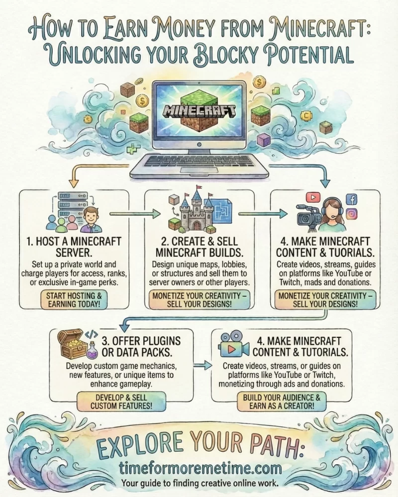 Creating plugins or data packs can help you earn money by adding new features that servers can use. Plugins are tools that enhance multiplayer servers, while data packs change how the game works in single or multiplayer worlds. Players enjoy these features without needing mods, which add extra items or effects.