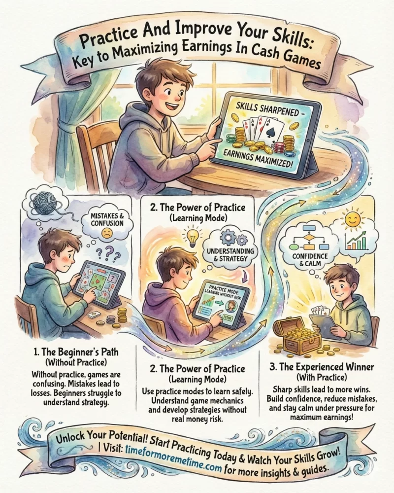 Sharp skills help you win more often in cash games. Practice helps you understand how a game works and shows you what to do in different situations. You can use practice modes in apps to learn without losing real money.