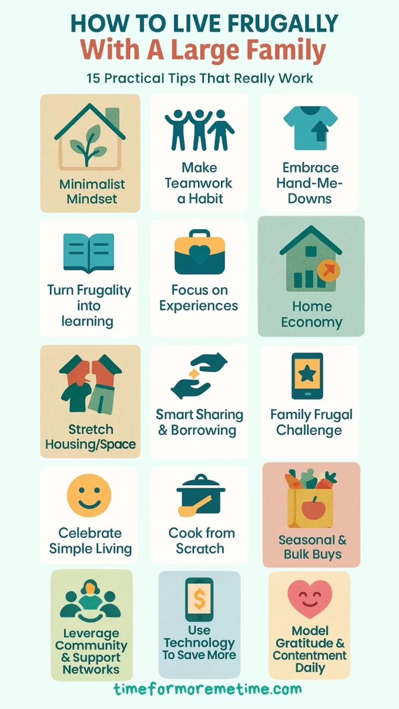 When responsibilities are divided, it becomes easier to live frugally with a large family because everyone is invested in keeping the household efficient.