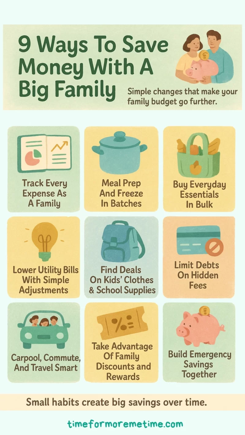 Having a big family is a blessing, but it also means bigger bills and tighter budgets. Between food, clothes, and school costs, it’s easy to feel like expenses never end. Still, it’s absolutely possible to save money with a big family by planning smarter, spending intentionally, and making small changes that add up over time. The goal isn’t to cut joy—it’s to stretch every dollar without sacrificing what matters most. Let’s get started!