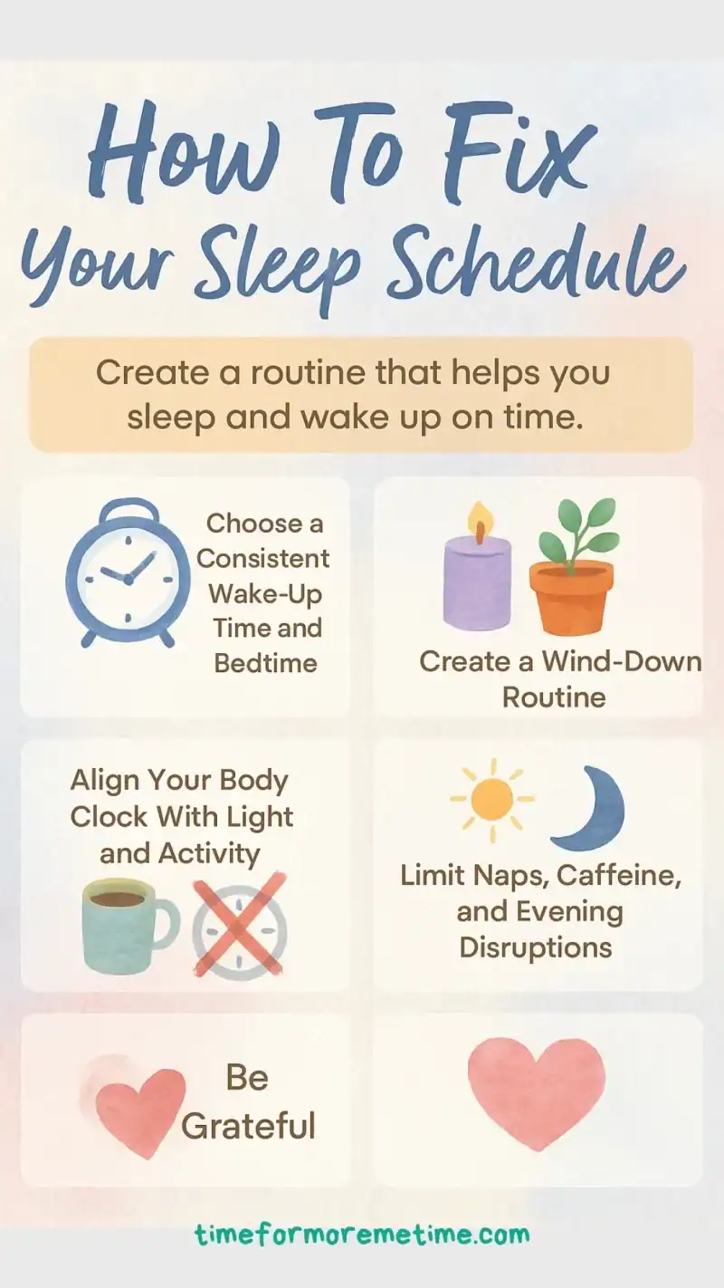 When you fix your sleep schedule, you can restore balance and focus to your days. It helps you wake up energized, think clearly, and stay consistent with your goals.