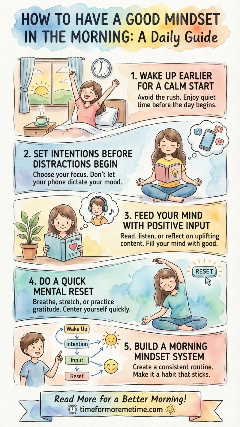A calm morning mindset begins with small, repeatable habits that shape your focus and energy. Each intentional action—stretching, reflecting, or planning—builds clarity that lasts through the day.