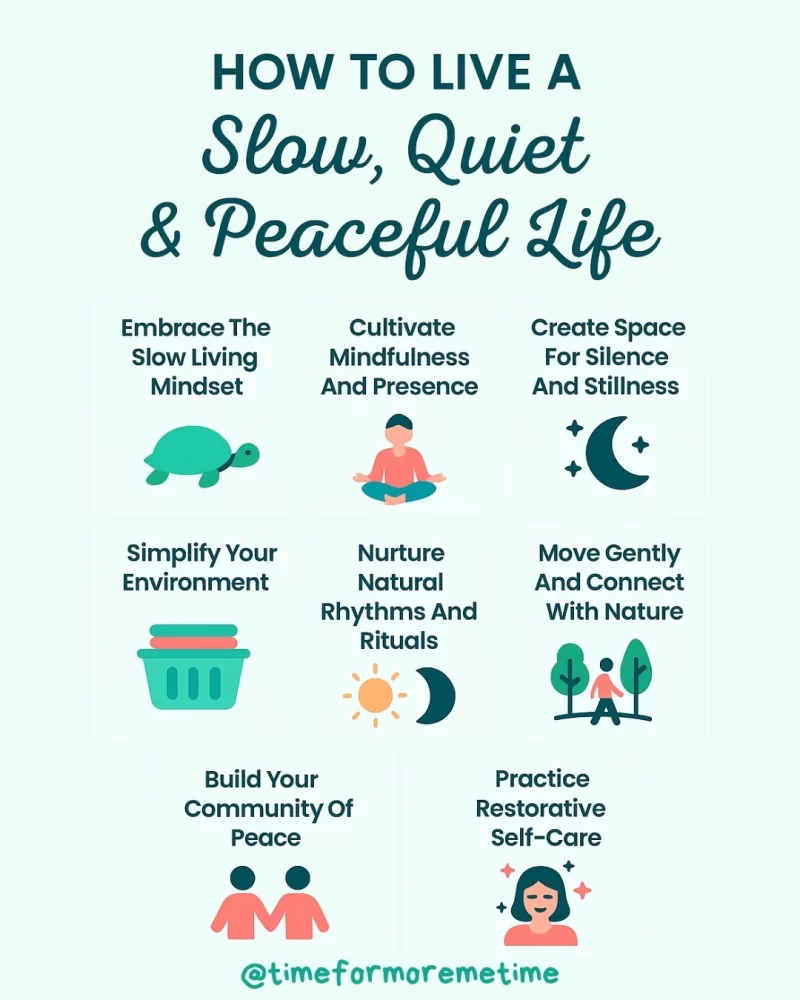 Living a slow, quiet, and peaceful life comes down to simple, intentional choices—slowing your pace, protecting your space, and focusing on what truly matters. Even small changes can shift how you experience each day, bringing more balance and calm into your routine.