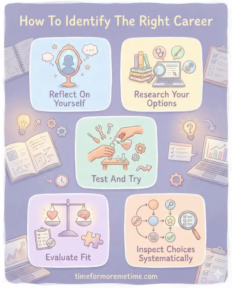 Identifying the right career begins with understanding yourself. It means knowing your skills, interests, personality, and values. I once listed the tasks I enjoyed and those I dreaded and realized that half my dream job ideas were built on others’ expectations rather than what genuinely fulfilled me.